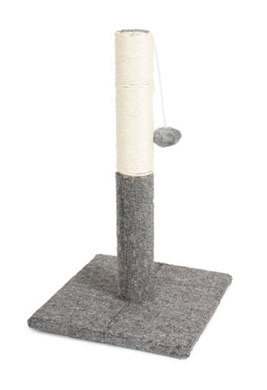 La colonna è ricoperta di corda di juta, filato ottenuto da fibre naturali in grado di assicurare una presa ben più che salda, mentre la larga base quadrata 31x31 cm, oltre ad assicurare una più che sufficiente stabilità agli attacchi repentini di Micio, è ricoperta di morbida moquette. Dalla colonna esce una cordina con un giochino a forma di pon pon che attirerà la curiosità di micio.