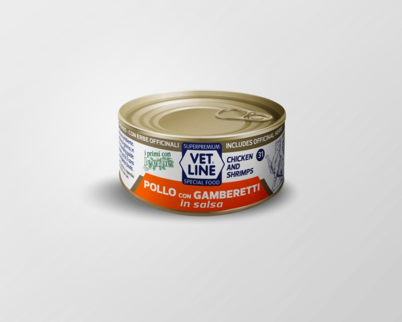 L'UMIDO PER GATTI VETLINE POLLO CON GAMBERETTI IN SALSA SI DISTINGUE PER: