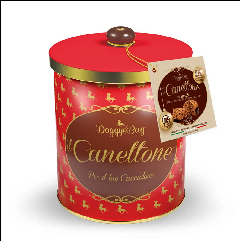 Doggye Bag Canettone Con Gocce Di FREECOA è una fantastica idea regalo per le festività Natalizie, un goloso panettone che conquisterà fin da subito il cuore e il palato di Fido.